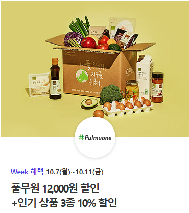 풀무원 30,000원 이상 구매 시 12,000원 할인되며