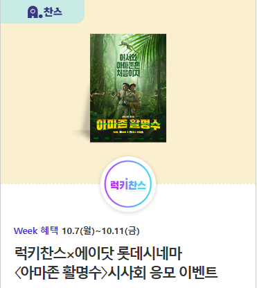 럭키찬스 X 에이닷 롯데시네마 <아마존 활명수> 시사회 응모 이벤트