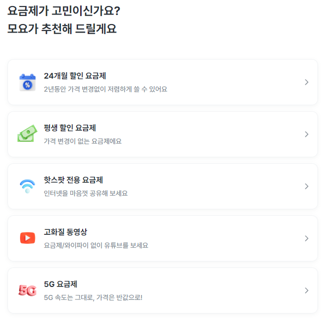나에게 꼭 맞는 요금제를 추천받고 싶으시다면 아래 버튼 누르셔서 바로 확인해 보세요