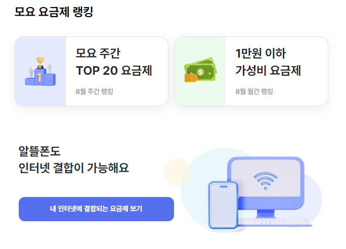 인터넷 결합 요금제도 있으니 확인해보세요