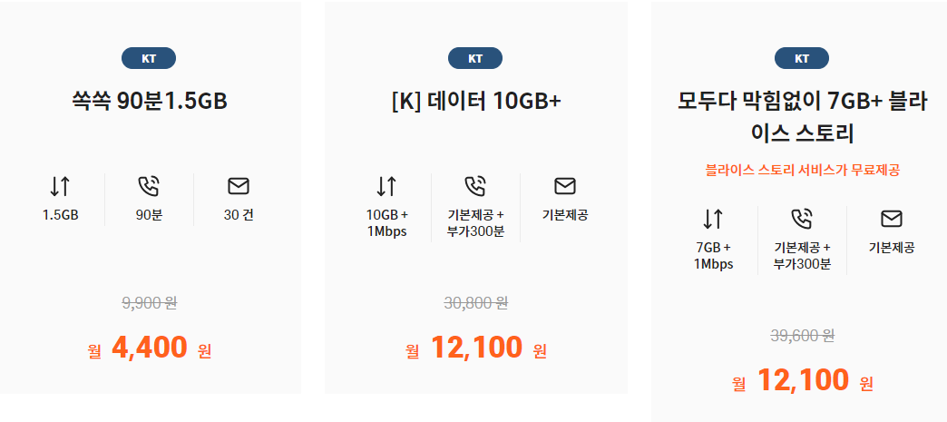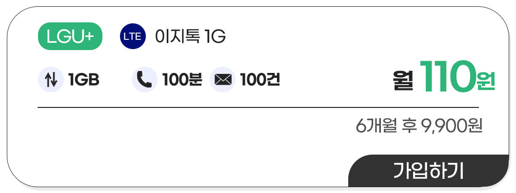 데이터가 많이 필요 없으시다면 월 110원 요금제가 가장 저렴합니다