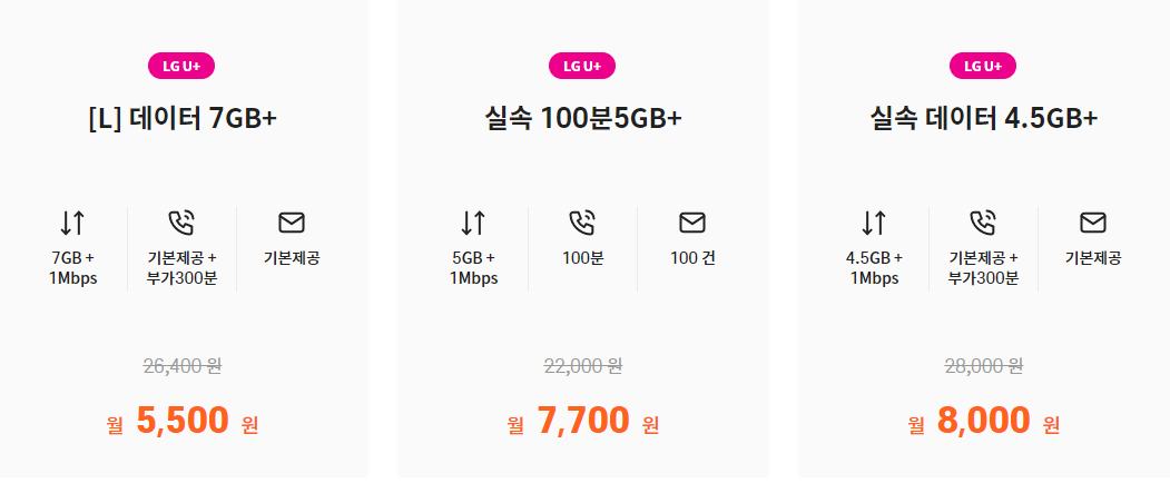 원하시는 데이터, 통화, 문자 양 확인하시고 신청하시면 됩니다