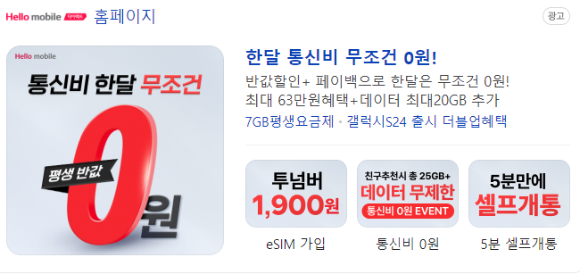 헬로모바일 홈페이지 바로가기 >>