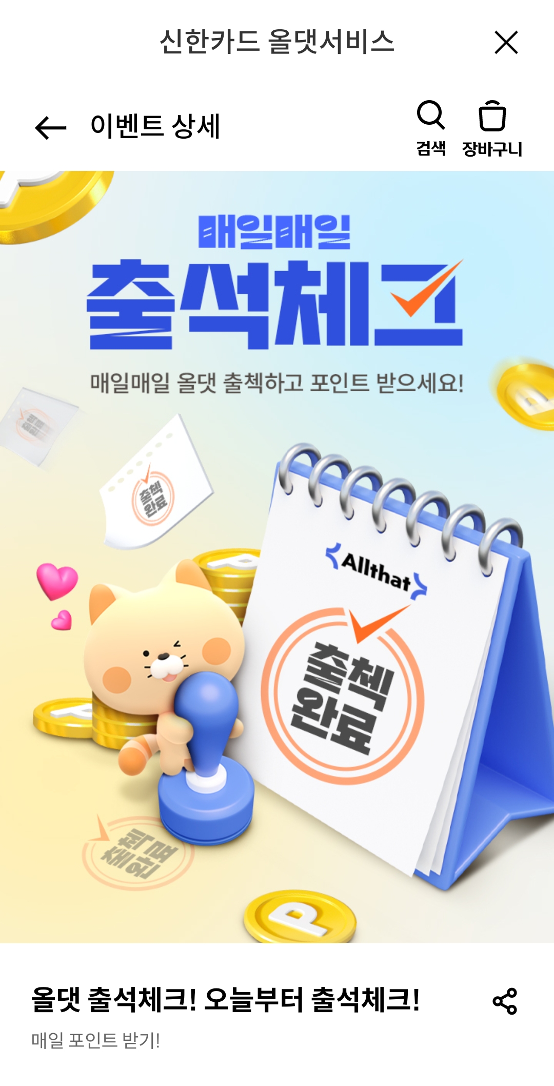 이렇게 출석체크로 모은 포인트로 신용카드 대금 결제도 가능하고 현금으로 바로 이체받으실 수도 있어요