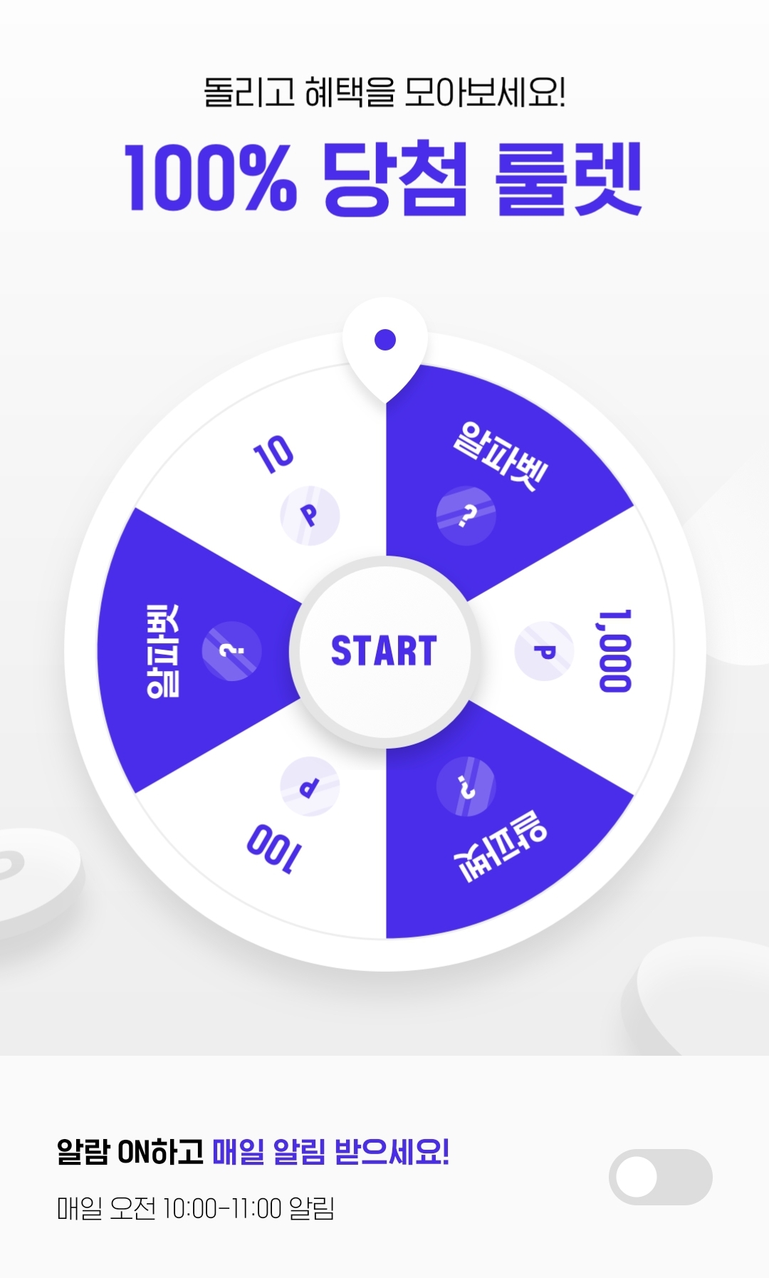 수요일에는 별별퀴즈 맞추면 50포인트 받을 수 있어요