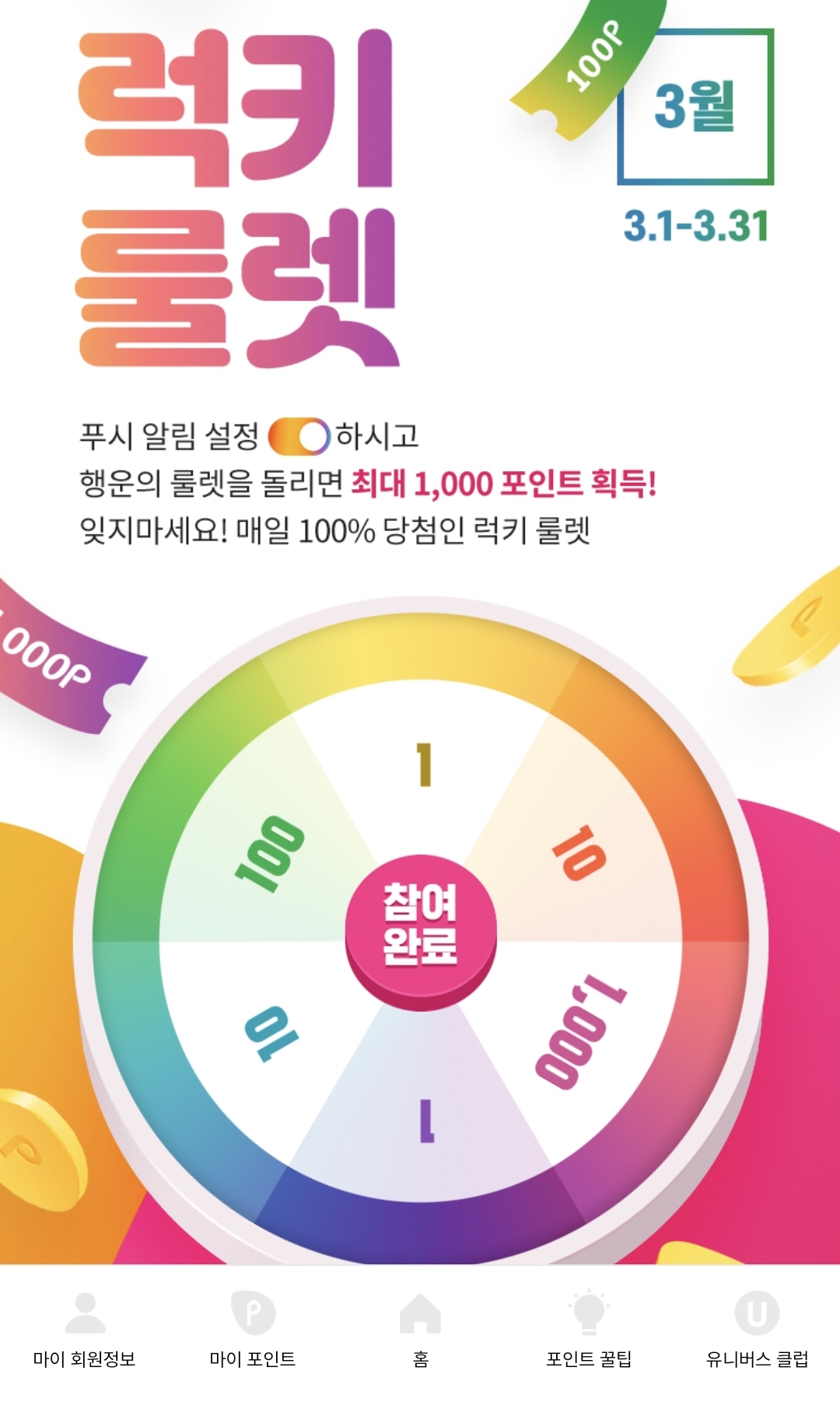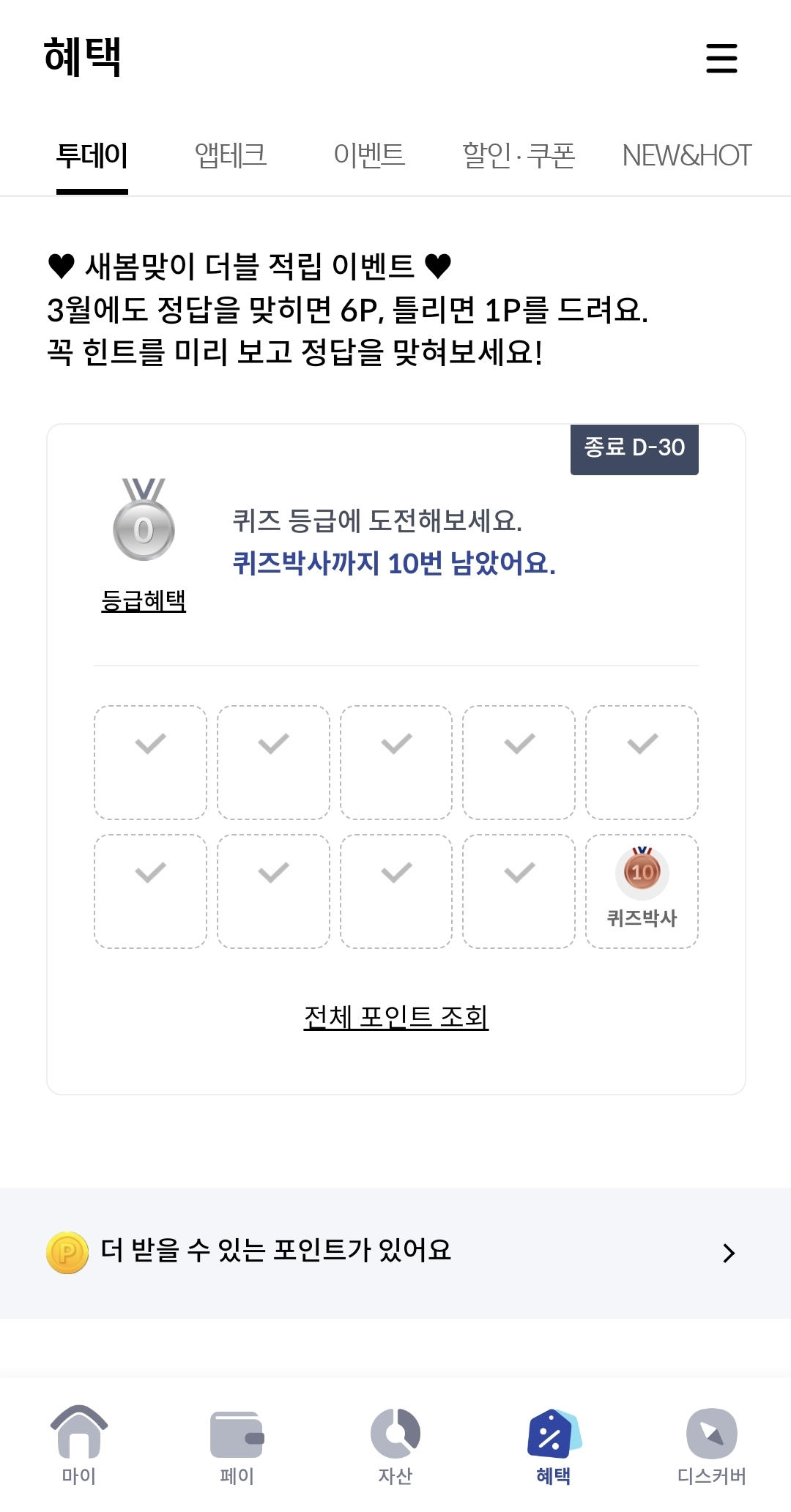 가끔 퀴즈 이벤트들도 진행하고 있으니 혜택란에 이벤트 잘 확인하세요