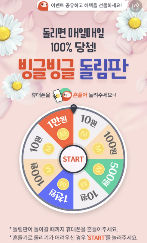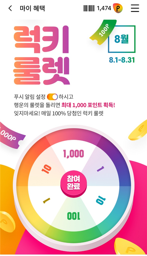 룰렛은 가끔 1000 포인트도 당첨돼요