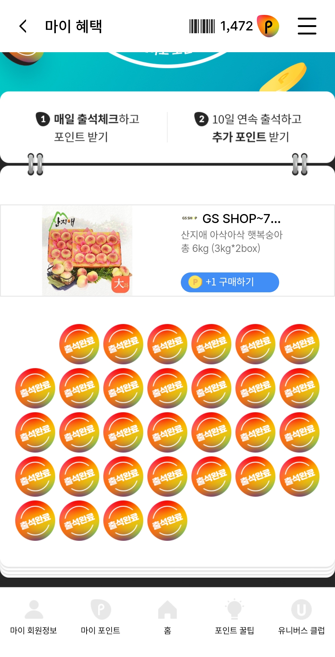 신세계포인트 앱에서 출석체크로 신세계 포인트 모을 수 있어요
