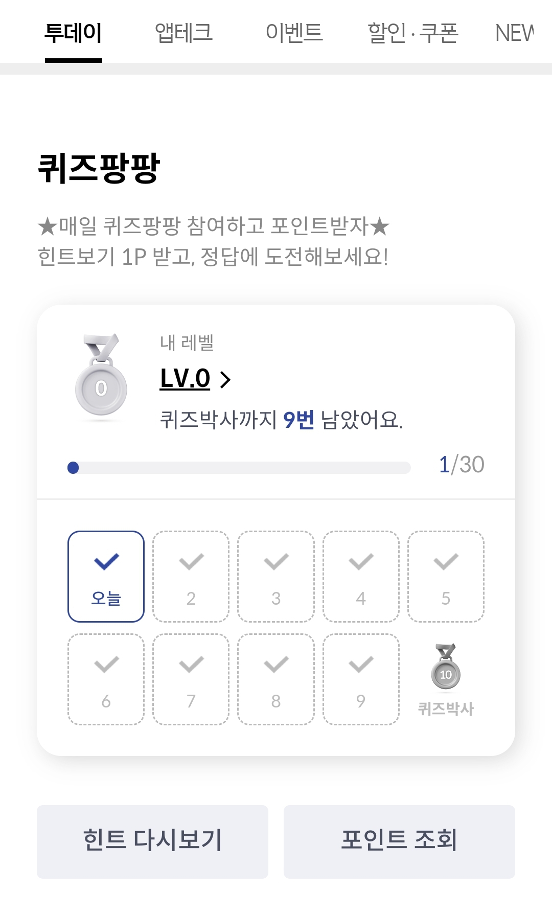 퀴즈왕 OX 퀴즈, 올댓 출석체크, 마이카 출석체크 세 가지 꼭 하고 있고