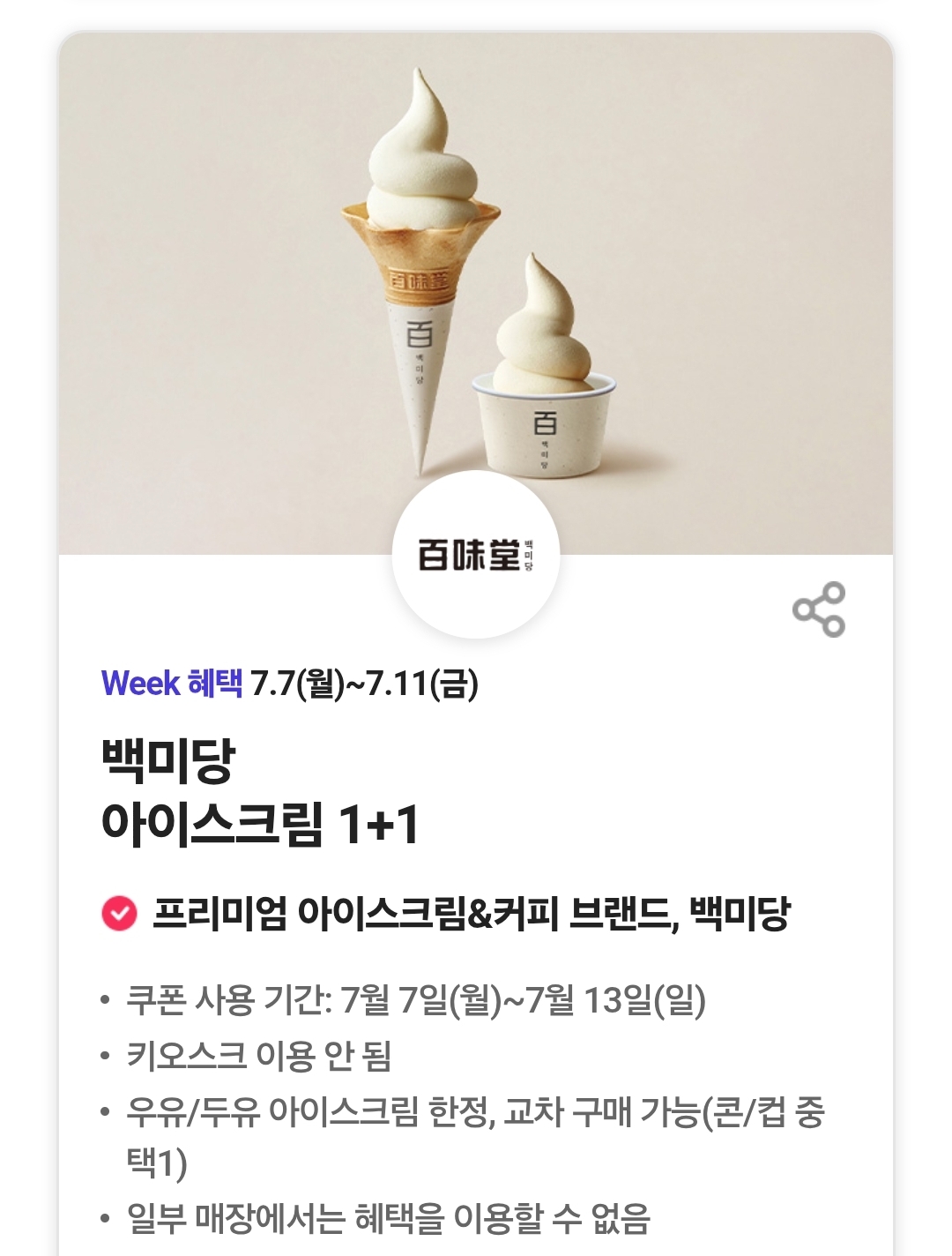 우유/두유 아이스크림 한정, 교차 구매 가능(콘/컵 중 택1)