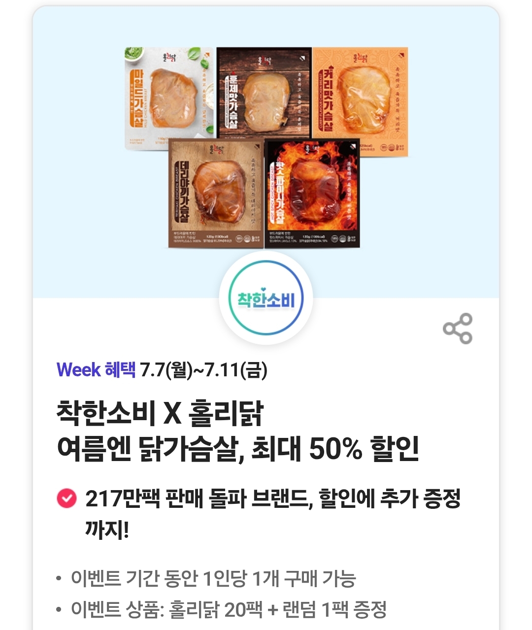 이벤트 상품: 홀리닭 20팩 + 랜덤 1팩 증정