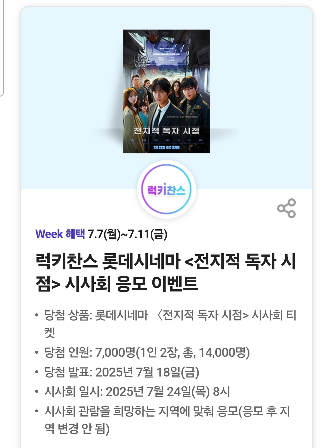 럭키찬스 롯데시네마 <전지적 독자 시점> 시사회 응모 이벤