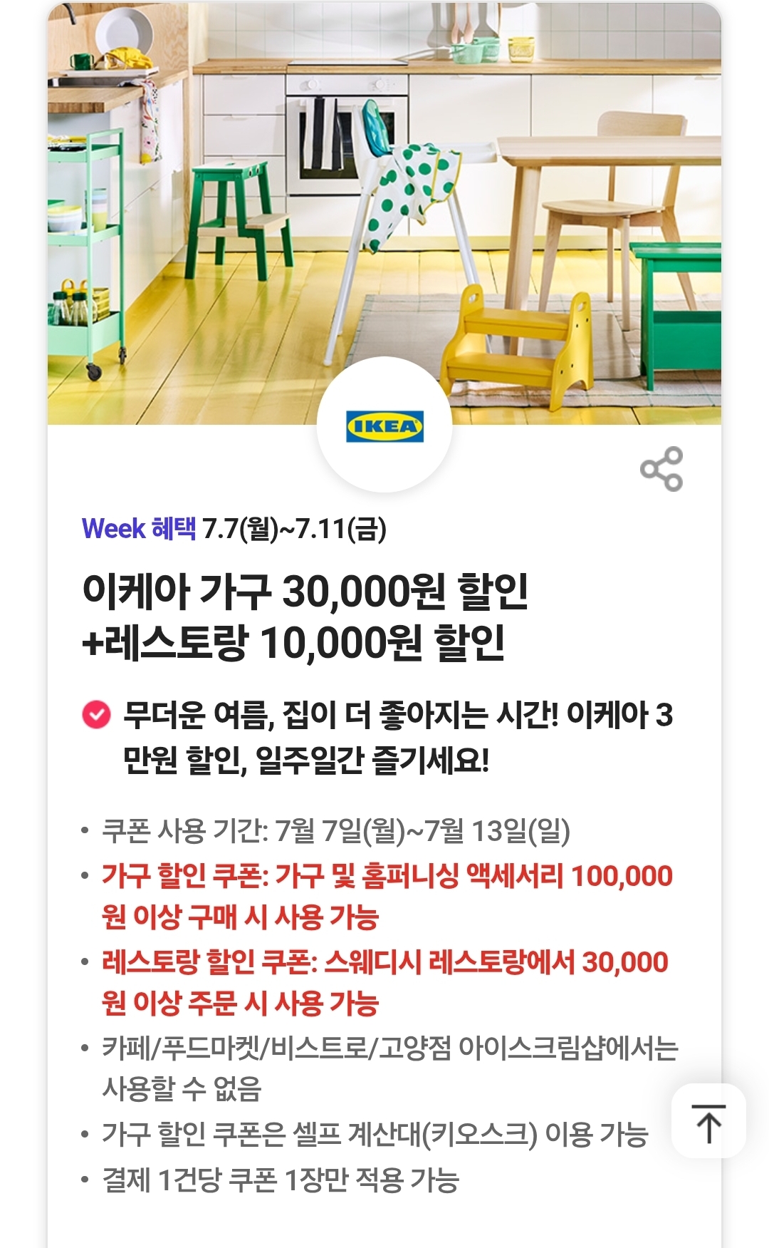 이케아 가구 30,000원 할인 + 레스토랑 10,000원 할인