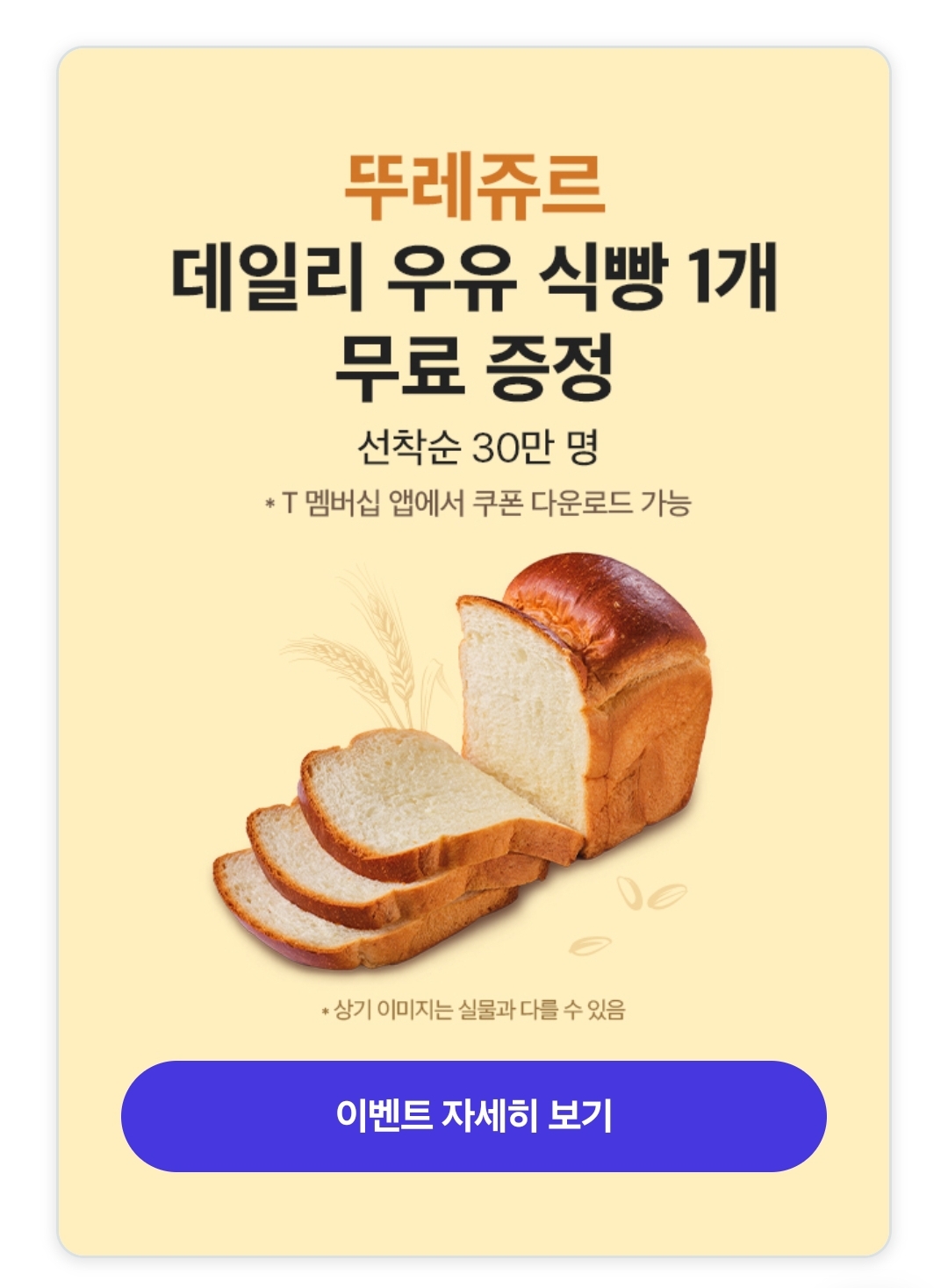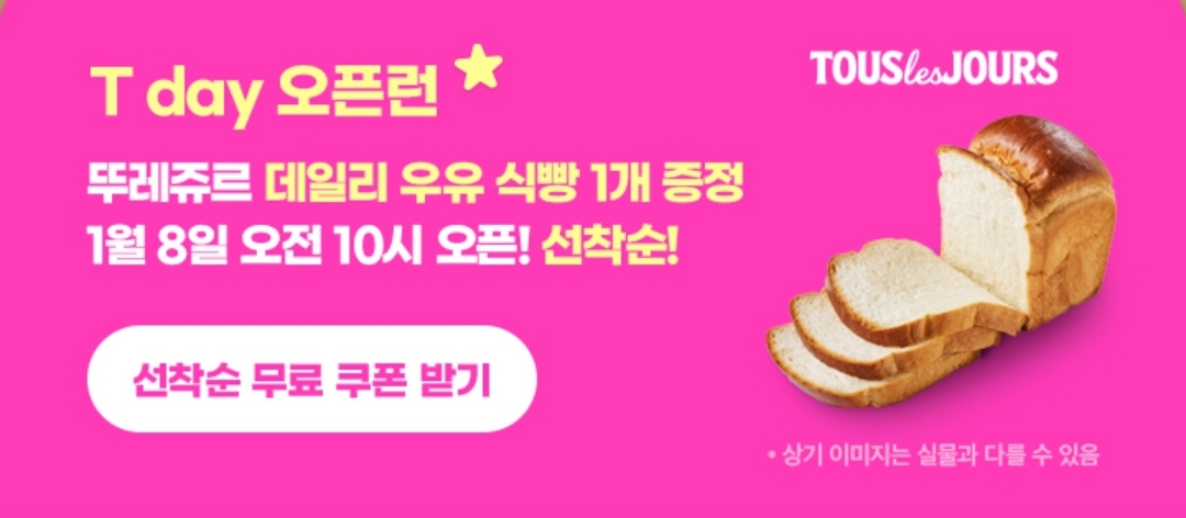 1월 8일에는 뚜레쥬르 데일리 우유식빵 1개 쿠폰도 선착순 30명에게 증정하니
