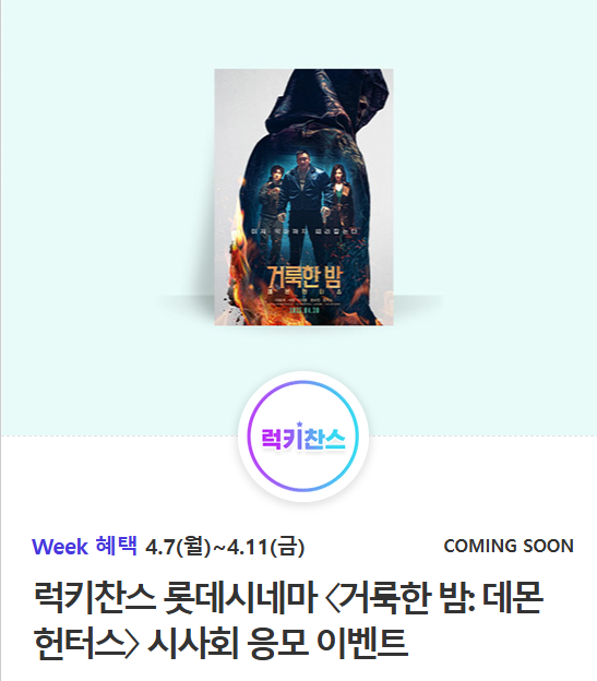 럭키찬스 롯데시네마 <거룩한 밤: 데몬헌터스> 시사회 응모 이벤트
