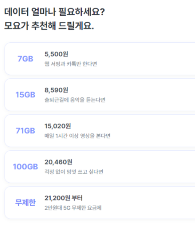 나에게 딱 맞는 요금제를 추천해 줍니다