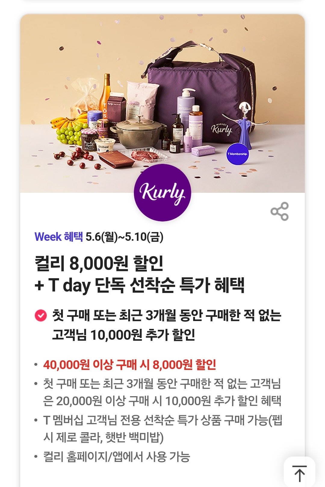 컬리 40,000원 이상 구매시 8,000원 할인 + TDAY 단독 선착순 특가 혜택(펩시 제로 콜라, 햇반 백미밥)