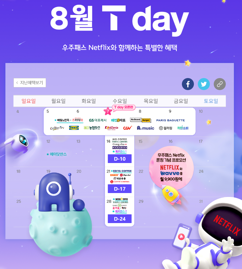 SKT 티멤버십 8월 티데이 알아보러 바로가기 >>