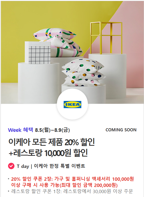 이케아 모든 제품 20% 할인 + 레스토랑 10,000원 할인
