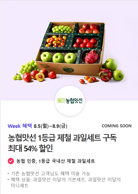 농협맛선 1등급 제철 과일세트 구독 최대 54% 할인