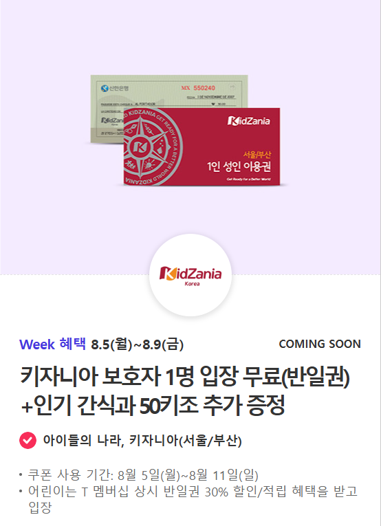 8월 첫째 주 티데이는 바로 내일부터 쿠폰 다운 가능합니다