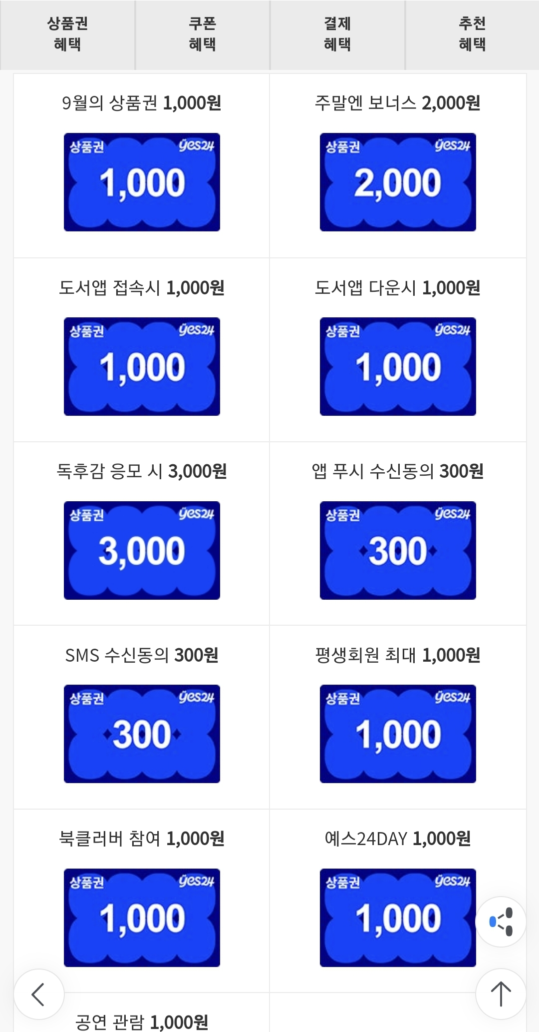 쿠폰은 YES24 도서앱 중간 혜택 모음 들어가시면 받을 수 있는 상품권들이 보여요
