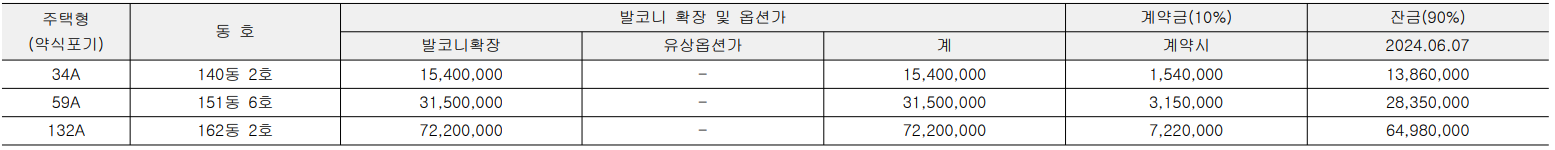 분양가와 발코니 비용 개별 안내 되며 부가가치세 포함 가격입니다