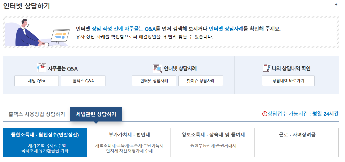 국세청 세금 무료 상담방법 양도소득세, 상속세, 종합소득세 등(인터넷, 전화, 방문)