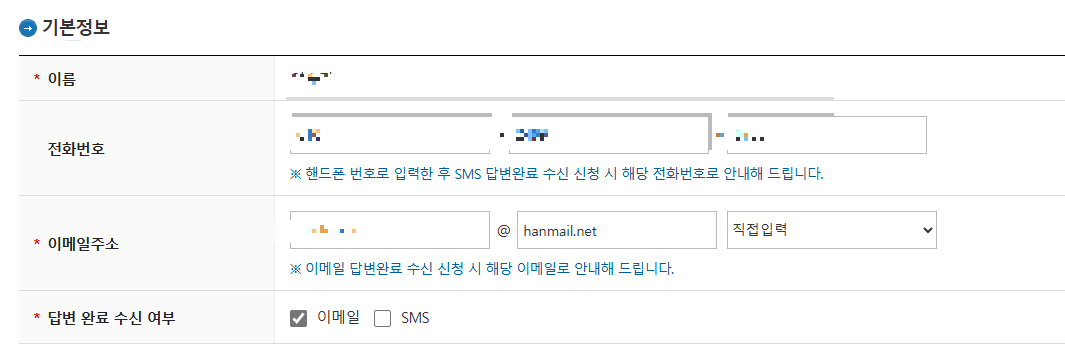 4. 질문자 기본 정보 입력해주세요