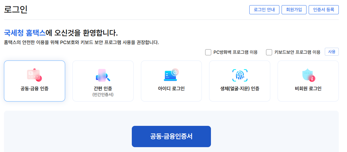 1. 아래 버튼 누르시면 바로 국세청 사이트로 이동 가능합니다