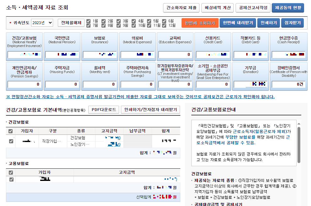 [한번에 내려받기] 선택하시면 공제 받을금액 있는 항목을 모아서 한 개의 PDF 파일로 한번에 다운받으실 수 있습니다