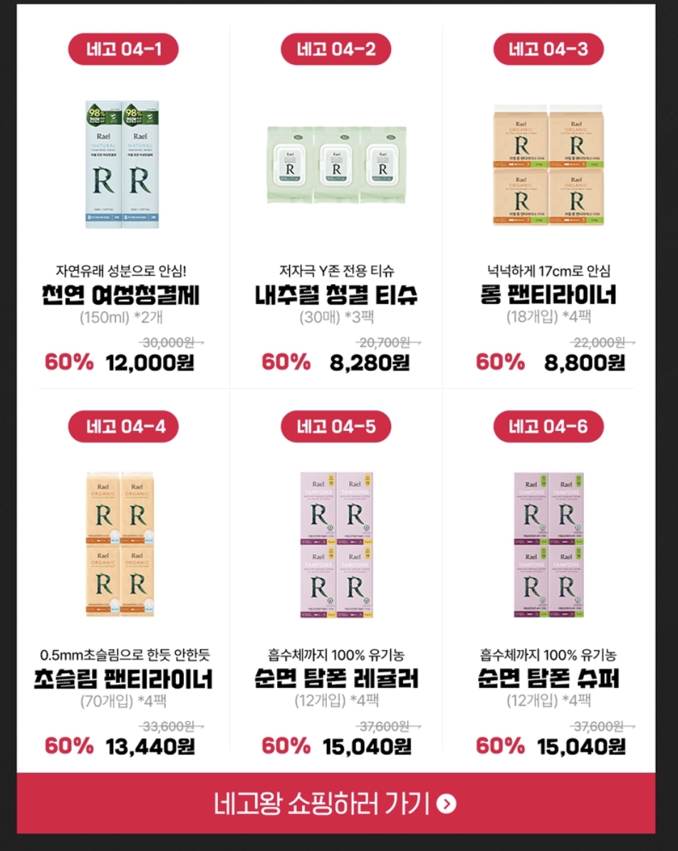 네고왕 라엘 Rael 생리대 구매하러 바로 이동하실 분들은 아래 바로가기 링크 통해 이동해 주세요