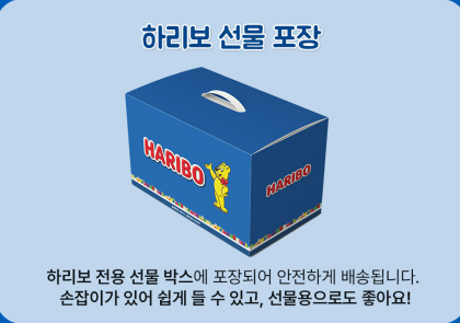하리보는 전용 선물 박스에 포장되어 안전하게 배송된다고 합니다