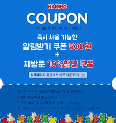 또한 알림받기 쿠폰 받으시면 500원 할인 즉시 사용 가능하며