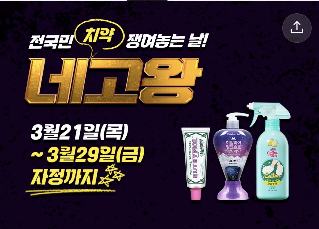 네고왕 치약칫솔 LG생활건강은 3월 21일 목요일부터 3월 29일 금요일 자정까지 구입하실 수 있어요