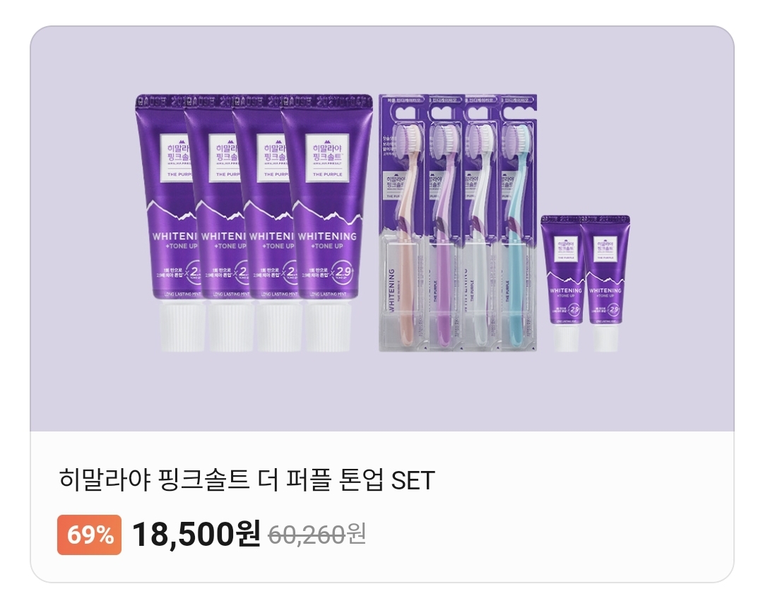히말라야 핑크솔트 더 퍼플 톤업 화이트닝 치약 20g 2개