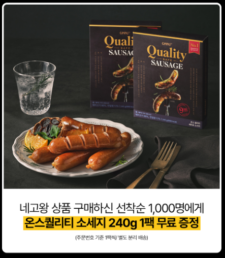 선착순 1,000명 안에 구매하시면 아질산 나트륨이 없는 온스퀄리티 세이프 소시지 240g 1팩 받으실 수 있어요