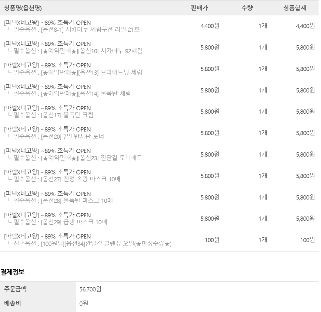 56,700원에 11개 제품 겟해서 1년 치 화장품 걱정 없어요
