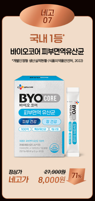 네고 07 ) CJ바이오코어 피부면역 유산균 71%