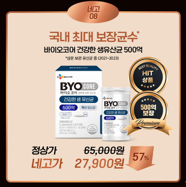네고 08 ) CJ바이오코어 500억 고함량 유산균 프로바이오틱스 57%
