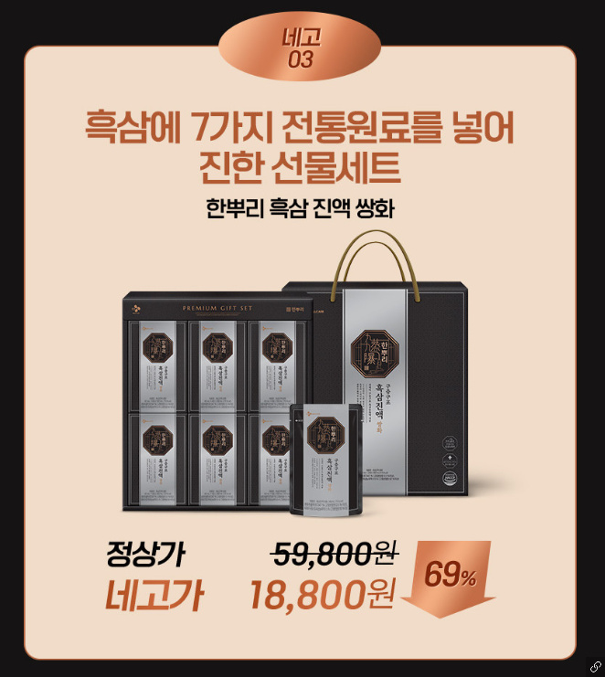 네고 03 ) 한뿌리 흑삼 진액쌍화 선물세트 69%