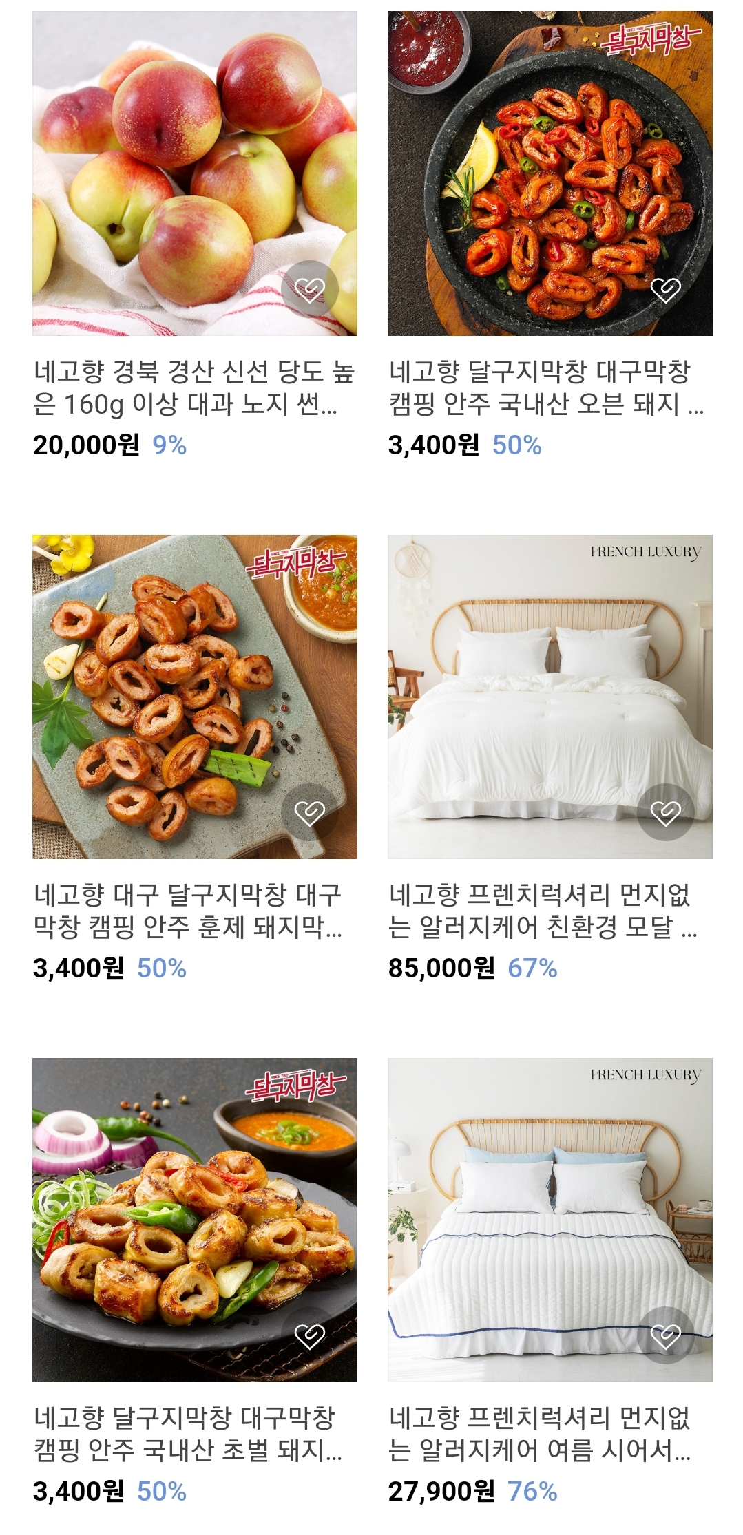 사이트 들어가보니 이번 네고향 품목들 업데이트 되어있어요