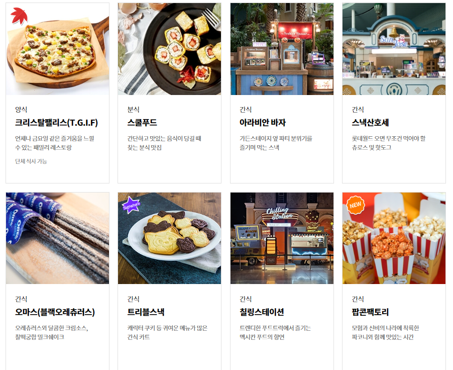 롯데월드 레스토랑, 식당, 간식 알아보기