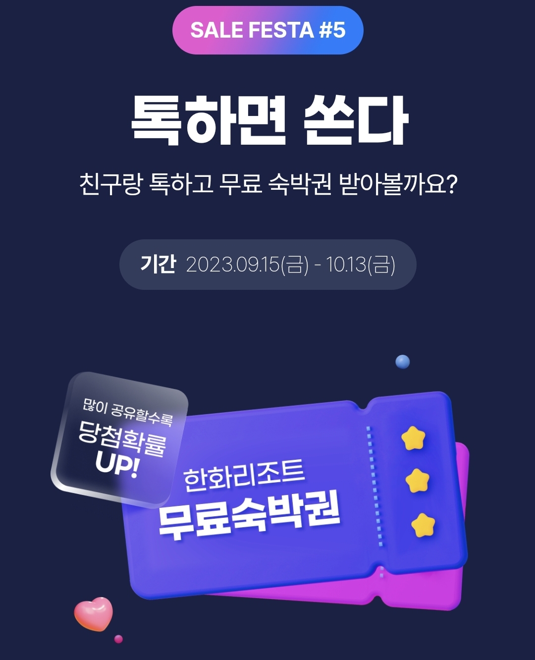 숙박세일페스타 한화리조트 5만원 할인이벤트 응모이벤트