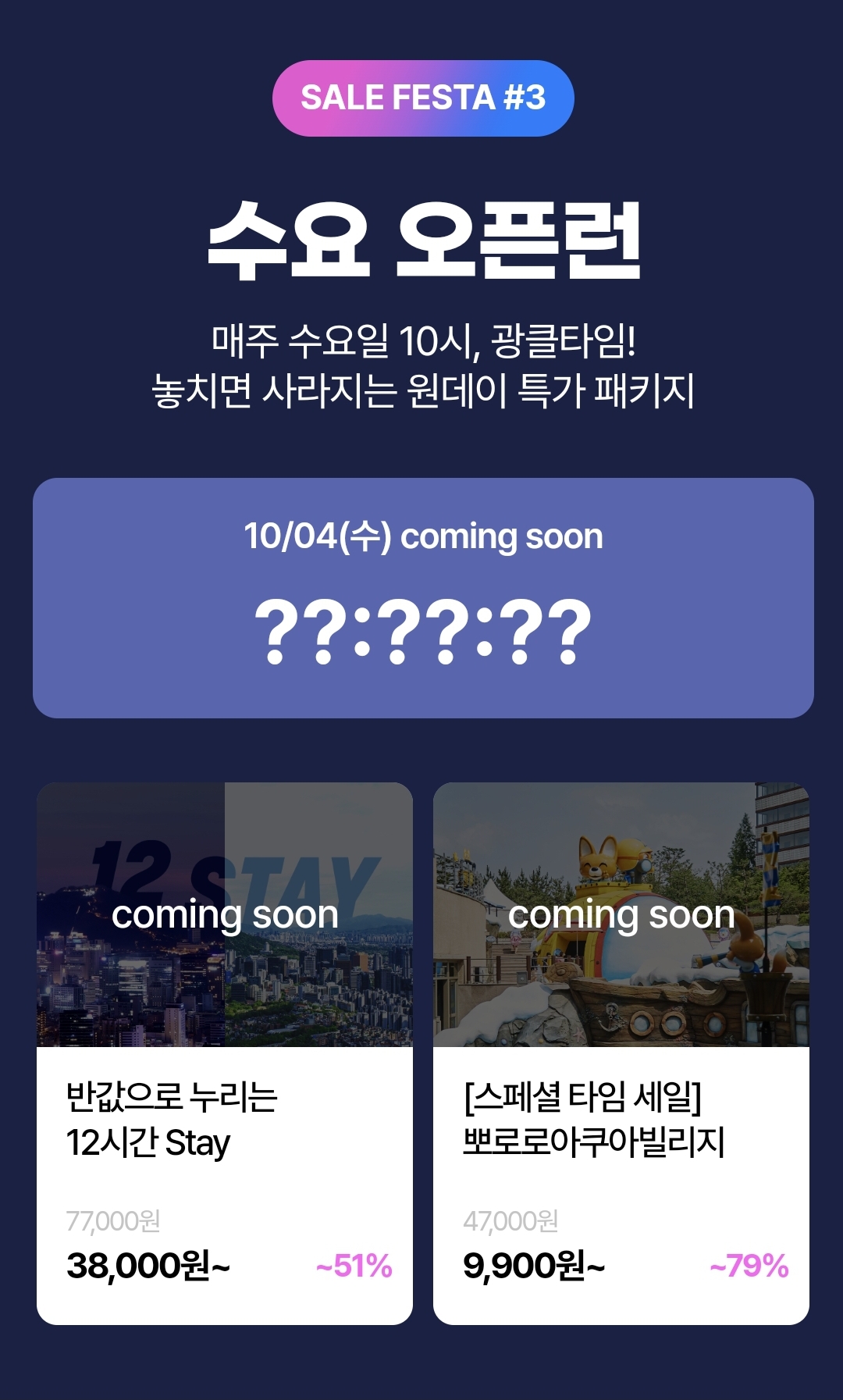 매주 수요일 오전10시에 원데이 특가로 선착순 이벤트 진행됩니다
