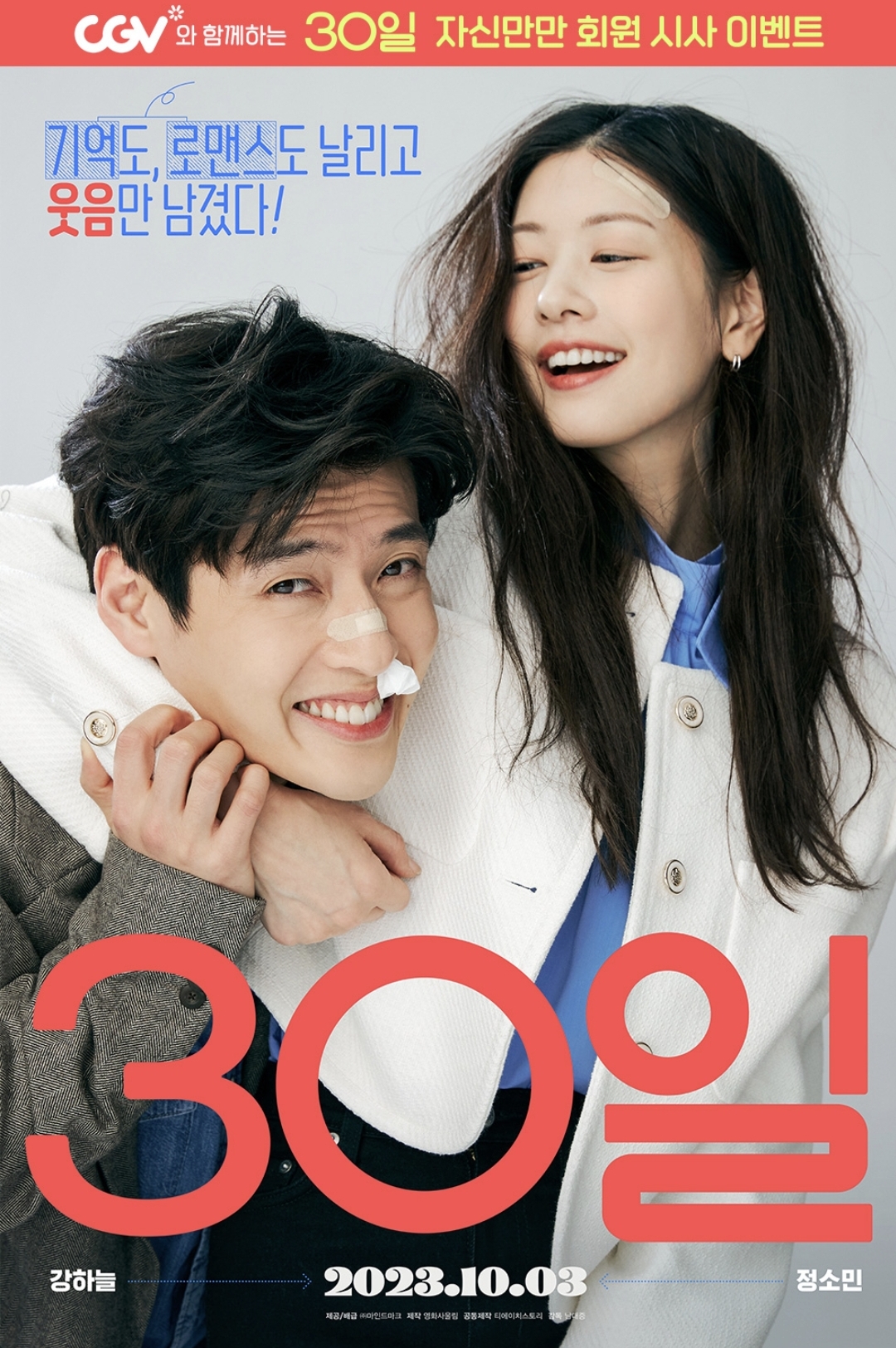 강하늘, 정소민 주연의 동반 기억상실 코미디 영화 '30일' 이 현재 CGV 에서 회원 시사 이벤트 중이에요