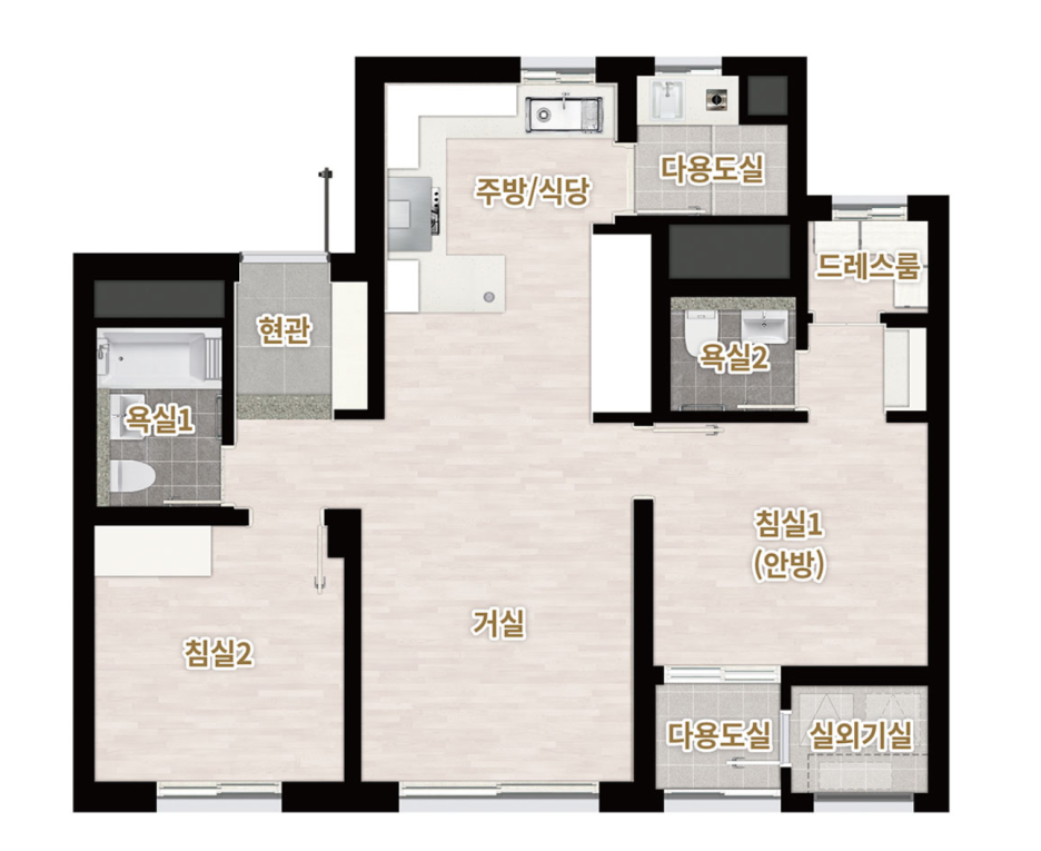59 type (판산형) - 침실 3 / 화장실 2 / 드레스