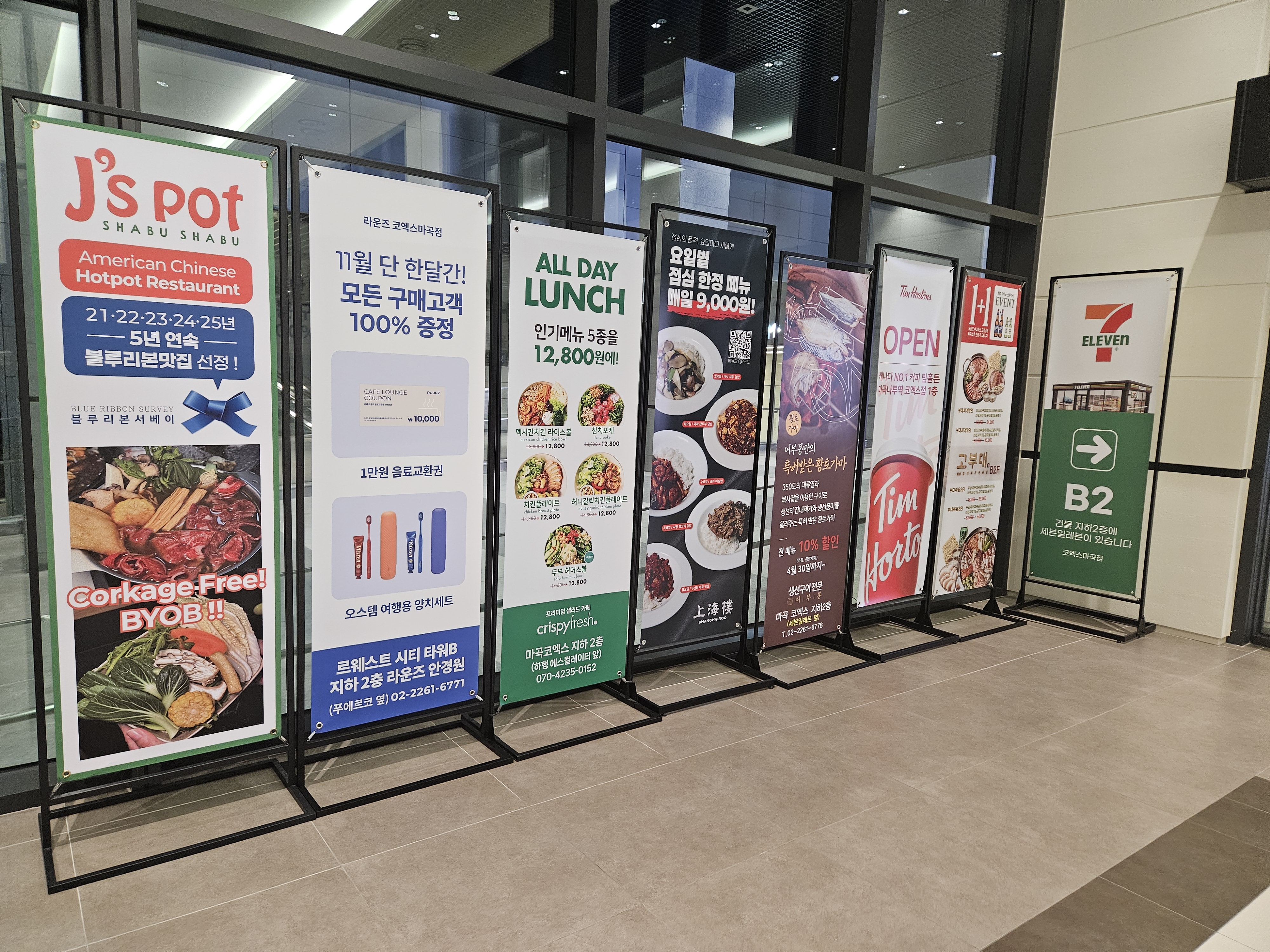 다양한 식당들과 편의점(세븐일레븐), 다이소가 있어요