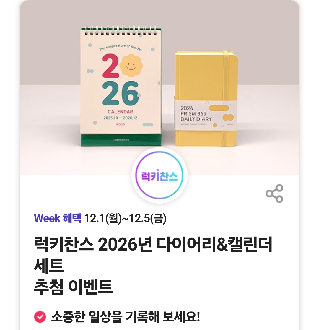 2026년 다이어리&캘린더 세트 추첨 이벤트