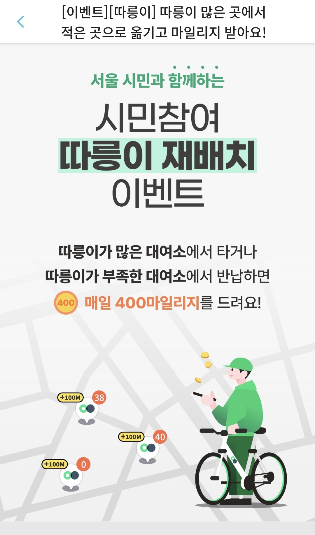 지금 8/31까지 따릉이 재배치 이벤트가 추가로 있어요